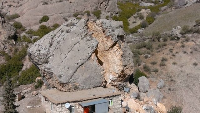 60 yaşındaki köy sakini Aziz Özkazar da "Bu taşlar gördüğümüz kadarıyla yerinde sabitti. Daha önce yaptığımız müracaatlarda gelen kontrolde taşın sağlam olduğunu bize söylediler. Biz de o yüzden korkmadık ama bu depremde kaya ikiye bölündü. Şu andaki tek çözüm bir kırıcının gelip üst taraftan bunu kırıp bu tehlikeyi önlemesi. Şu anda tedbir için çadırlara geldik. Çadırlarda yaşam can güvenliğimiz için uzaklaşmış bulunmaktayız. Eşyalarımız evlerin altında, hayvanlarımız evlerin altında. Hayvanları bağlayacak yer yok, düz arazi yok ki çadır kuralım. Hayvanı besleme sıkıntısı da çekiyoruz. Deprem zaten evlere gereken zararı verdi. Hatta evler engebeli olduğu için araç da geçmiyor, herhangi bir ulaşım da yok. Kaya hala sallanıyor. Arkadaki başka taş da yukarıdan kayıp gelmiş zamanında ama hangi tarih olduğunu tahmin edemiyoruz" ifadelerini kullandı.