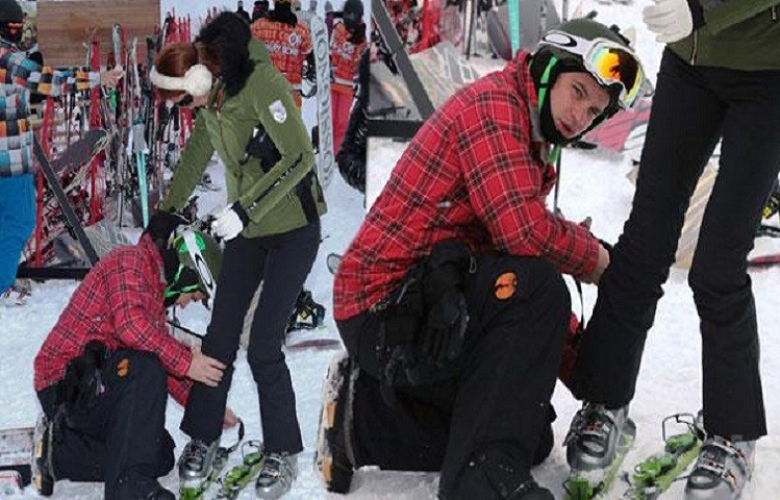 Gün boyu kayak yapan Pınar Altuğ, kısa molanın ardından kayaklarını takmakta zorlanınca imdadına eşi Yağmur Atacan yetişti. Centilmen eşin o...