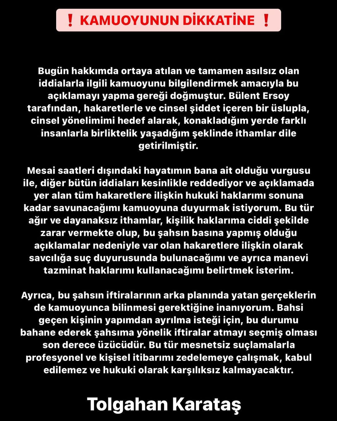 TOLGAHAN KARATAŞ'TAN AÇIKLAMA