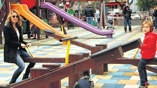 Oğlu ile tahteravalliye binen Gamze Özçelik eğlenceli vakit geçirdi. Eğlendiğini muhabirlerden saklamayan Özçelik bu sırada poz vermeyi de ihmal etmedi.