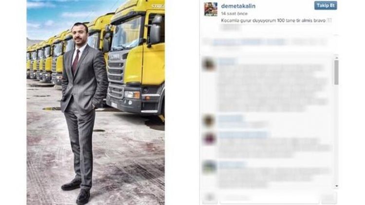 Akalın, eşinin TIR'ları önünde çektirdiği fotoğrafı paylaşıp " Kocamla gurur duyuyorum.100 tane TIR almış bravo' yazmıştı. Ünlü şarkıcı bu paylaşımlarıyla da tepki çekmişti.
