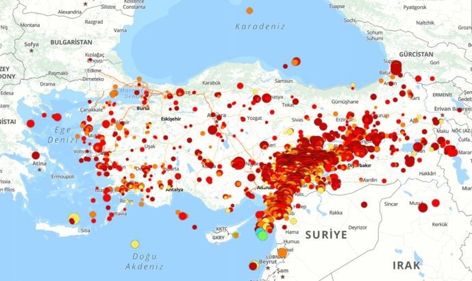 Sonra Samandağ 6.4 ile tetiklendi. Sonra onun içerisinde iki tane daha 6 büyüklüğünde oldu. Onlar da yine 7.8'in peşinden geldiler. 5'lik depremlerin çoğu artçı, uzakta olan depremlerse tetiklenme ile yaşandı. Daha uzakta olan depremler, büyük depremin etkisiyle gelişen depremler. Bingöl'de olan da Niğde Bor'da olan da bölgenin etkilenmesi sonucu yaşandı.