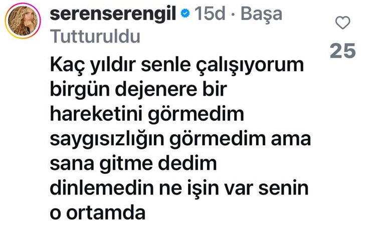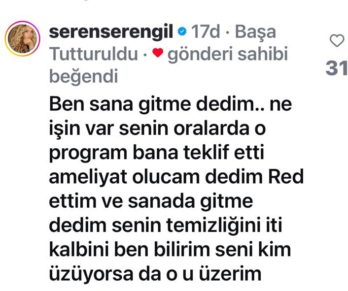 Seren Serengil, makyör Tolgahan Karataş'ın paylaşımının altına da şu yorumları yaptı: