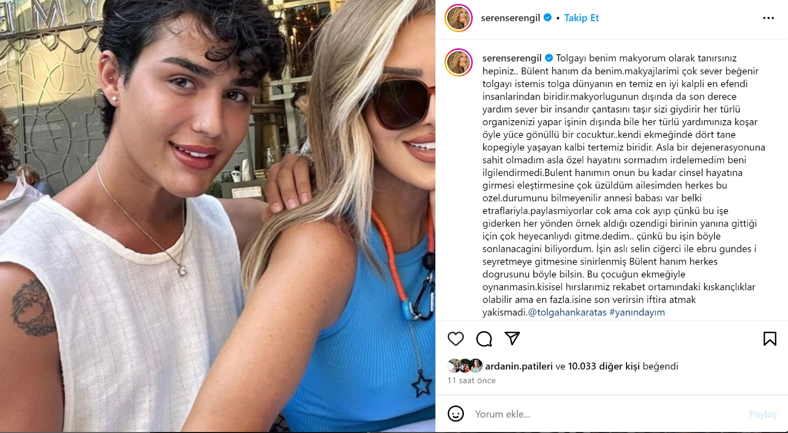 Yaşanan bu gelişmeler ardından Tolgahan Karataş'ın makyörlüğünü yaptığı bir diğer isimde Seren Serengil... Bülent Ersoy'a makyaj konusunda Karataş'ı kendisinin önerdiğini paylaşan Serengil, söz konusu durumun ise bir 'iftira' olduğunu kaydetti.