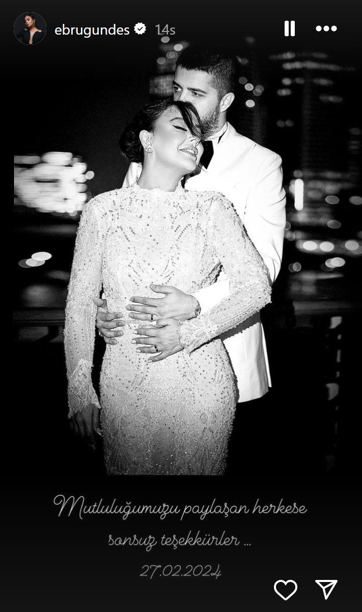 Ebru Gündeş nikahın ardından sosyal medya hesabından teşekkür mesajı yayınladı.