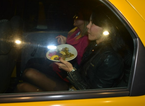 Dolmaları evine götürdüğünü söyleyen Şallı' nın taksiye biner binmez yemeğe başladığı görüntülendi.
