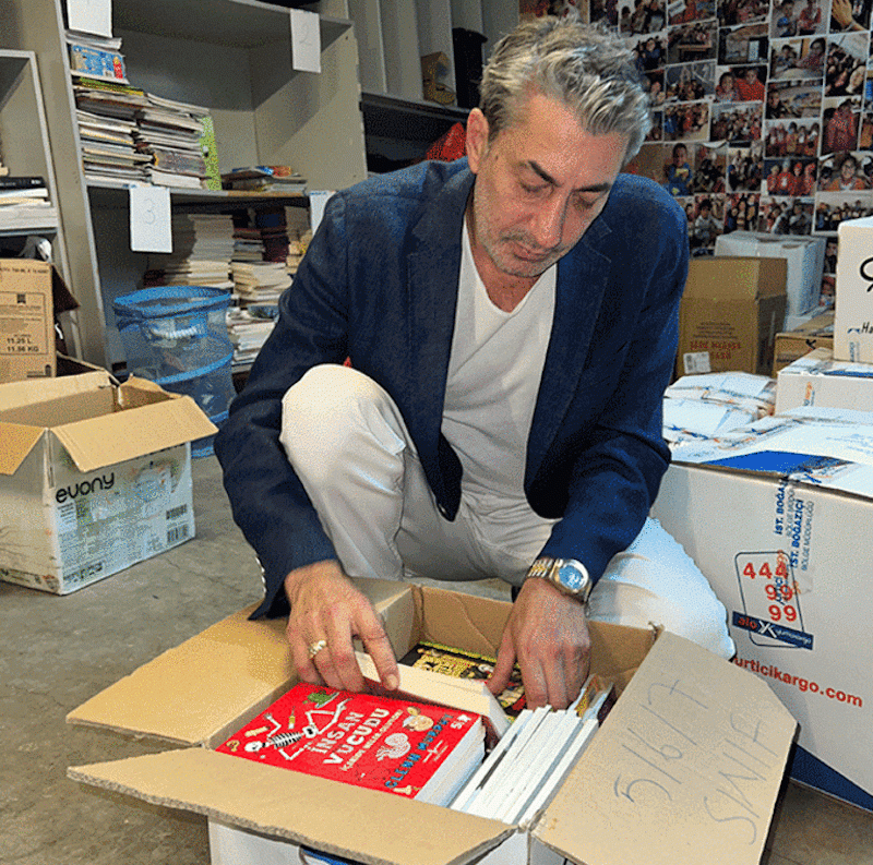 Erkan Petekkaya, önceki gün Beşiktaş'ın kadın taraftar grubu Çarşı Kadın'ın Akatlar'daki deposuna sürpriz bir ziyaret yaptı. Köy okulları kampanyasına destek olmak için yanında kitap da getiren oyuncu, okullara gönderilmek için hazırlanan kolileri elleriyle hazırladı.