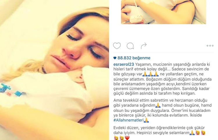 " Yaşamın, mucizenin yaşandığı anlarda ki hisleri tarif etmek kolay değil... Sadece sevincim de bile gözyaşı var. Ne yollardan geçtim, ne süreçler atlattım. Boğazım düğüm düğüm olduğunda bile anlatamadım yaşadığım acıyı, kendimi üzerken çevremi üzmemeye özen gösterdim. Sanıldığı kadar güçlü değilim aslında, bir tarafım hep kırılgan. Ama tevekkül ettim. Sabrettim ve her zaman olduğu gibi yaradana sığım. Hamdolsun bugüne, hamdolsun bu yaşadığım duygulara. Ömer'imi kucakladım ya binlerce şükür iki kolumda evlatlarım. İkisi de Allah'ın emanetleri. Evdeki düzen, yeniden öğrendiklerimle çok şükür daha iyiyim. Hepinizi sevgiyle selamlarım."