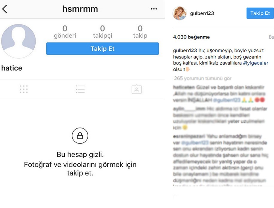 İşte Ergen'in Instagram hesabından yaptığı paylaşıma eklediği not: ''Hiç üşenmeyip, böyle yüzsüz hesaplar açıp, zehir akıtan, boş gezenin boş kalfası, kimliksiz zavallılara iyi geceler olsun.''