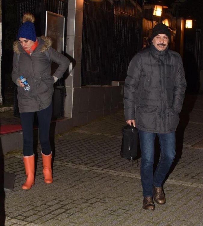 Oyunun sahnelendiği Kadıköy Duru Tiyatro’sundan birlikte ayrılan ikili, flaşlardan rahatsız oldu.