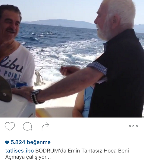 Bir teknede şarkı söyleyen Tatlıses, çektiği videoyu "BODRUM'da Emin Tahtasız Hoca Beni Açmaya çalışıyor..." notuyla instagram üzerinden paylaştı.