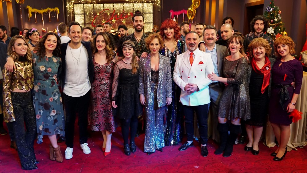 ‘Öyle De Güzel’ ve ‘Kime Diyorum’ adlı şarkılarını seslendiren sanatçı, çekimlerin sonunda tüm oyuncularla fotoğraf çektirip yeni yıl pastasını kesti.