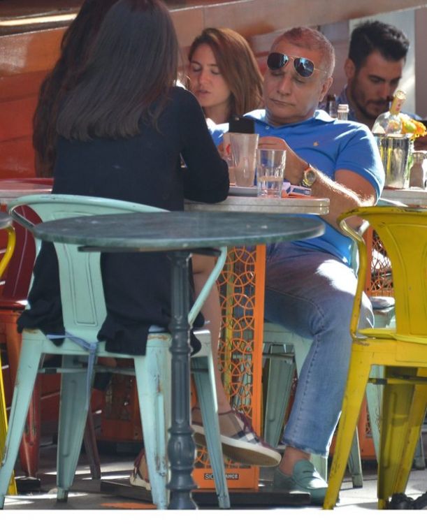 Atiye Sokak’taki bir kafede oturdukları sırada habercileri fark eden Erbil, arkadaşı ve menajeri Stelyo Pipis’i arayarak yanlarına çağırdı.