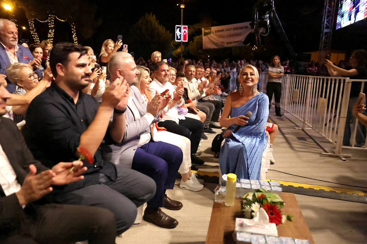 Şarkılarıyla katılımcılardan büyük alkış alan Muazzez Ersoy'a sahnede Menemen Belediye Başkanı Aydın Pehlivan tarafından bir sepet dolusu incir hediye edildi.