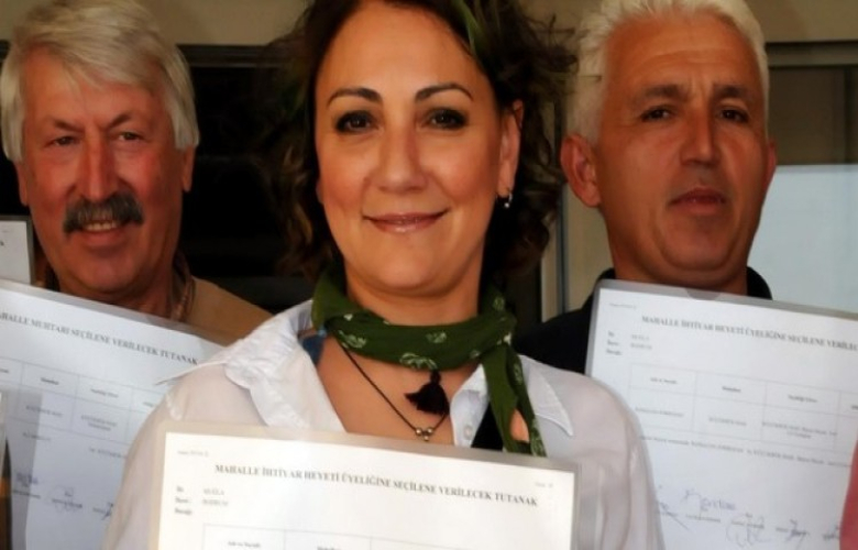 Küçükbükü mahalle muhtarlığı seçimlerinde aza olan Özlem Tekin mazbatasını almak için Muhtar Ali Akbulut ve diğer azalarla beraber Bodrum Adliyesine...
