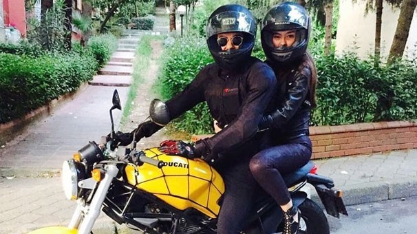 Yeni evli çift Kadir Doğulu ile Neslihan Atagül, evliliklerinin üçüncü ay dönümünü motosiklet gezintisiyle kutladı.