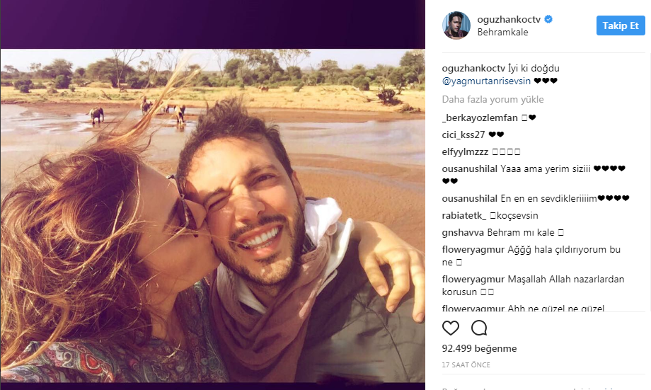 Şarkıcı Oğuzhan Koç, sevgilisi oyuncu Yağmur Tanrısevsin’in doğum gününü sosyal medya hesabı Instagram’dan paylaştığı bir fotoğrafla kutladı.Şu aralar İbrahim Büyükak’ın senaryosunu yazdığı “Yol Arkadaşım” adlı filmin çekimlerinde oyuncu olarak yer alan Oğuzhan Koç, Yağmur Tanrısevsin ile birlikte çekilmiş bir fotoğrafının altına şu notu düştü: