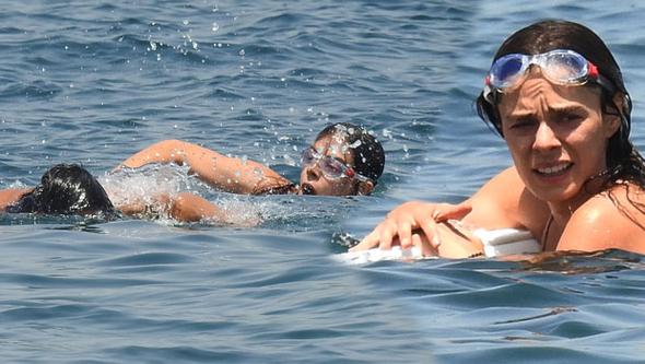 Çeşme’nin ardından tatil rotasını Bodrum’a çeviren Özge Özpirinçci ve Burak Yamantürk, önceki gün gittikleri plajda yüzme yarışı yaptı. İkilinin mücadelesini tatilciler de ilgiyle izledi.