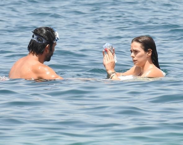 Özge Özpirinçci ile Burak Yamantürk, tatile Bodrum’da devam ediyor. İkili önceki gün Bitez Sarnıç Beach’teydi. Bir süre güneşlenen Özpirinçci ve Yamantürk, sıcaktan bunalınca deniz gözlüklerini takıp suya girdi.
