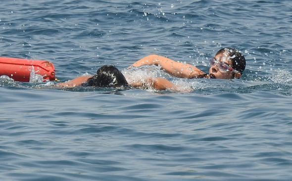 Çift, bir süre sonra yarışmaya karar verdi. Finish noktasını açıktaki dubalar olarak belirleyen iki ünlü oyuncu, kıyasıya bir rekabete girdi. Tatilcilerin de ilgiyle izlediği yarışın sonunda kazanan Yamantürk oldu. Yarışı kaybeden Özge Özpirinçci, kıyıya dönmeden önce dubalara tutunarak bir süre dinlendi.