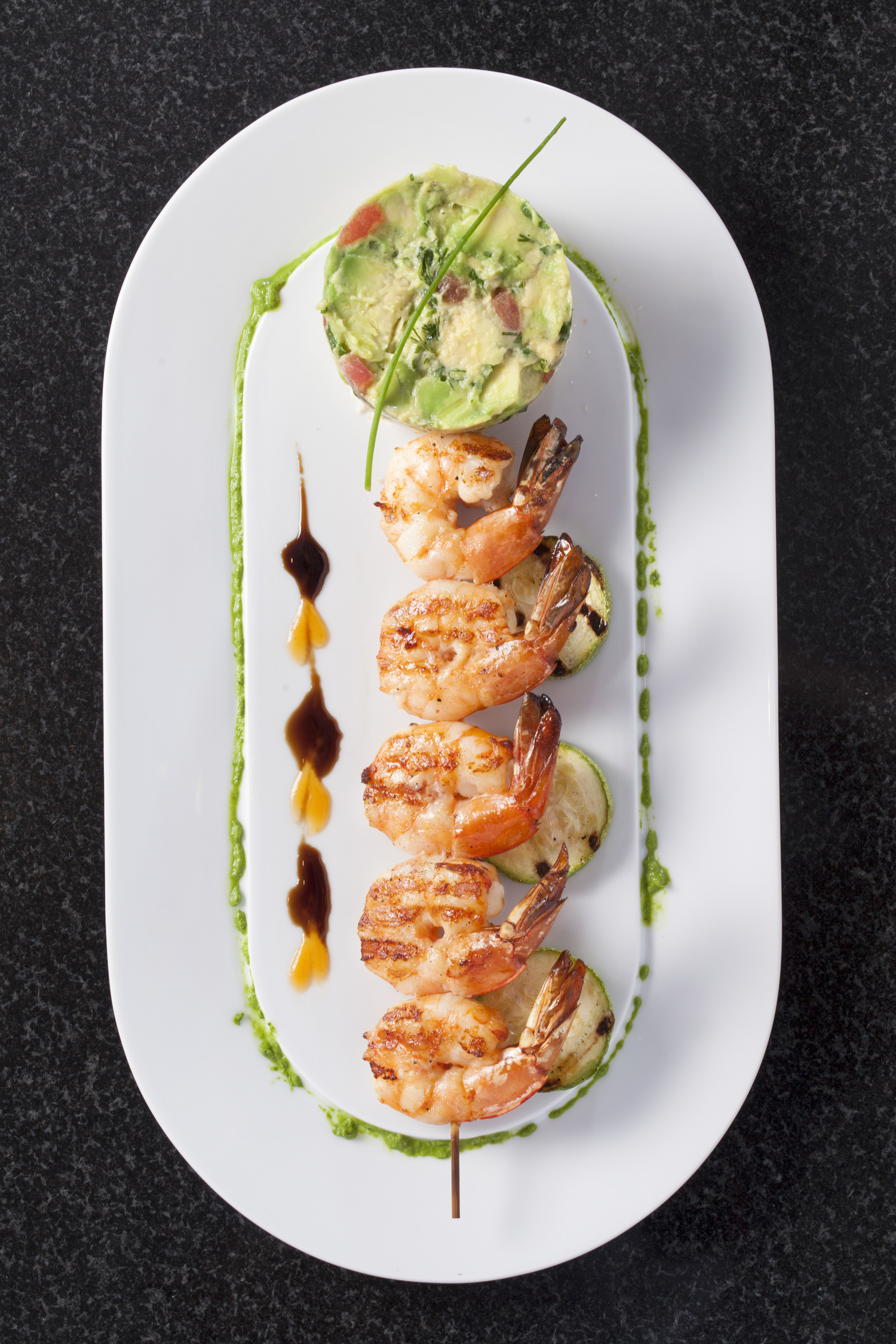 Avakado salsa ile sunulan Karides, çok lezzetli.