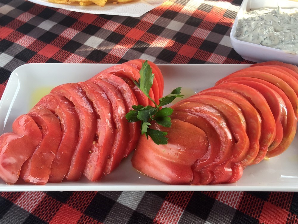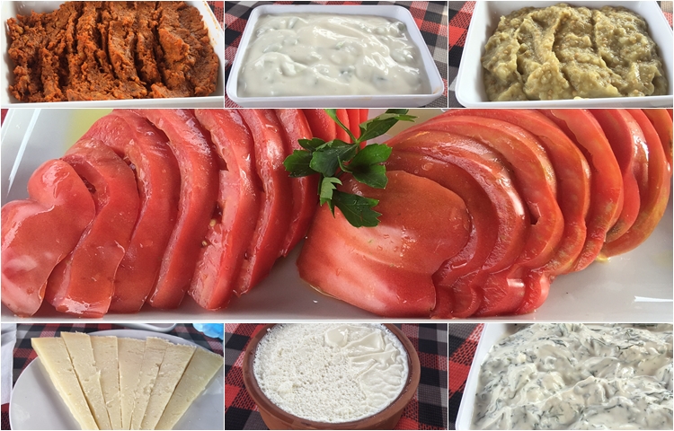 Biz sohbet ederken, masa kuruluyor: Bahçeden yeni toplanmış Domates, Yoğurtlu Ispanak Salatası, ev yapımı Cevizli Ezme, Katı Cacık, Köy Kaşarı, Yoğurt, Patlıcan Salatası, bahçeden toplanmış yeşilliklerden yapılmış Salata… Her şey mis gibi taze ve çok lezzetli. Ev yapımı Cevizli Ezme ve Yoğurtlu Ispanak Salatasının tadı hala damağımda. Tekirdağ’dan, arkadaşlarının çiftliklerinden getirttikleri Köy Kaşarını da mutlaka denemelisiniz.