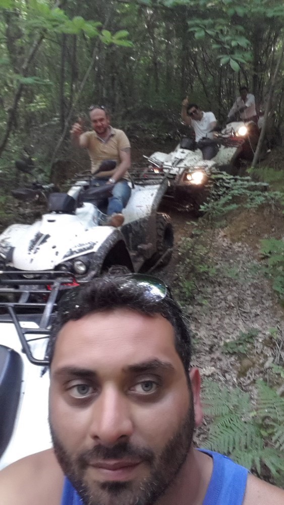Biz kızarmış ekmeklerimiz eşliğinde zeytinyağlıların tadına varırken, eşim Ali Bostan ve bizimle yemeğe katılan yönetmen Mustafaa Kotan'da kısa ATV Turuna katılıyor.