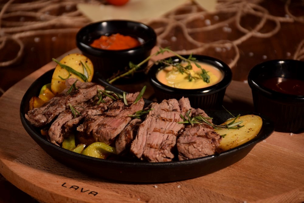 Viando Special, fırında taze baharatlarla pişirilmiş 200gr dana döş, tereyağlı patates, kuşkonmaz, chmichuri sos eşliğinde servis ediliyor. Favorim!